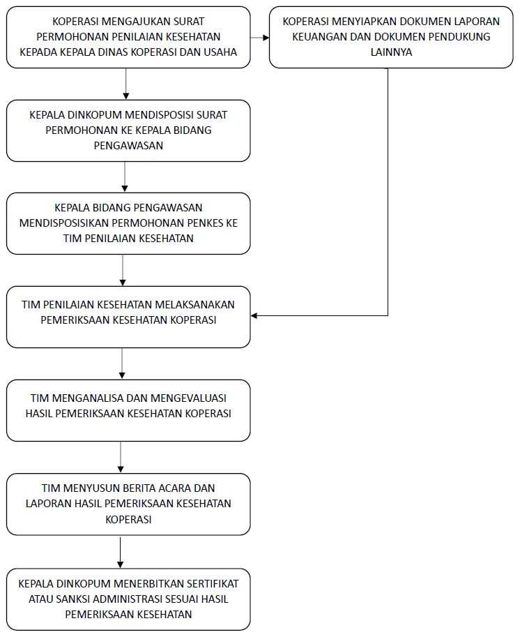 Pemeriksaan Kesehatan Koperasi merupakan bagian dari mekanisme pengawasan terhadap Koperasi, sesuai dengan Peraturan Menteri Koperasi, Usaha Kecil, dan Menengah Republik Indonesia Nomor 9 Tahun 2020 tentang Pengawasan Koperasi. Pemeriksaan Kesehatan menjadi elemen penting dalam pengawasan Koperasi karena memberikan gambaran mengenai kondisi Koperasi yang menjadi objek pengawasan selama periode tahun buku yang diperiksa.
